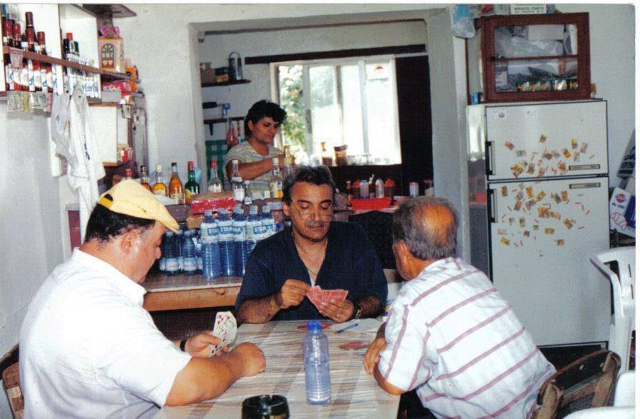 Kafe Bar O Mike with its few chairs and pleasant atmosphere where the locals and tourists can enjoy a Greek coffee or a meal, indoors or outdoors under the shade of the old platano tree located next to the historic, 5th century church, Koimisis tis Theotokou.